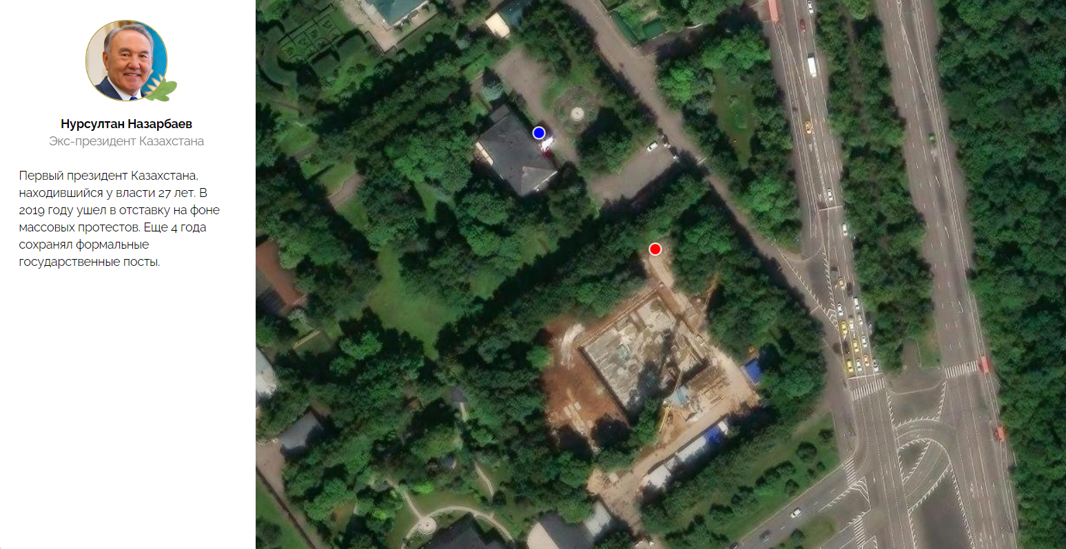 Ресейлік «Проект» зерттеу басылымы Ресейдің Федералдық күзет қызметі (ФСО) Мәскеудегі Воробьев тауларындағы элиталық саяжайларды жоғары лауазымды саясаткерлер мен билікке жақын бизнесмендерге жалға беретіні туралы материал жариялады. Тұрғындар тізімінде Қазақстанның бұрынғы президенті Нұрсұлтан Назарбаевтың да аты-жөні аталған, деп жазады POLITICO.KZ.
