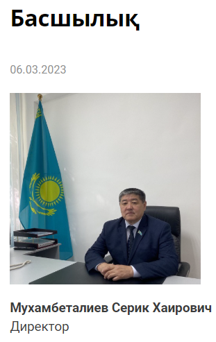 Қаржылық мониторинг агенттігі ресми хабарламасында директордың аты-жөнін атамағанымен, колледждің ресми сайтында басшы ретінде Мұхамбетәлиев Серік Хайырұлы есімді азамат көрсетілген.