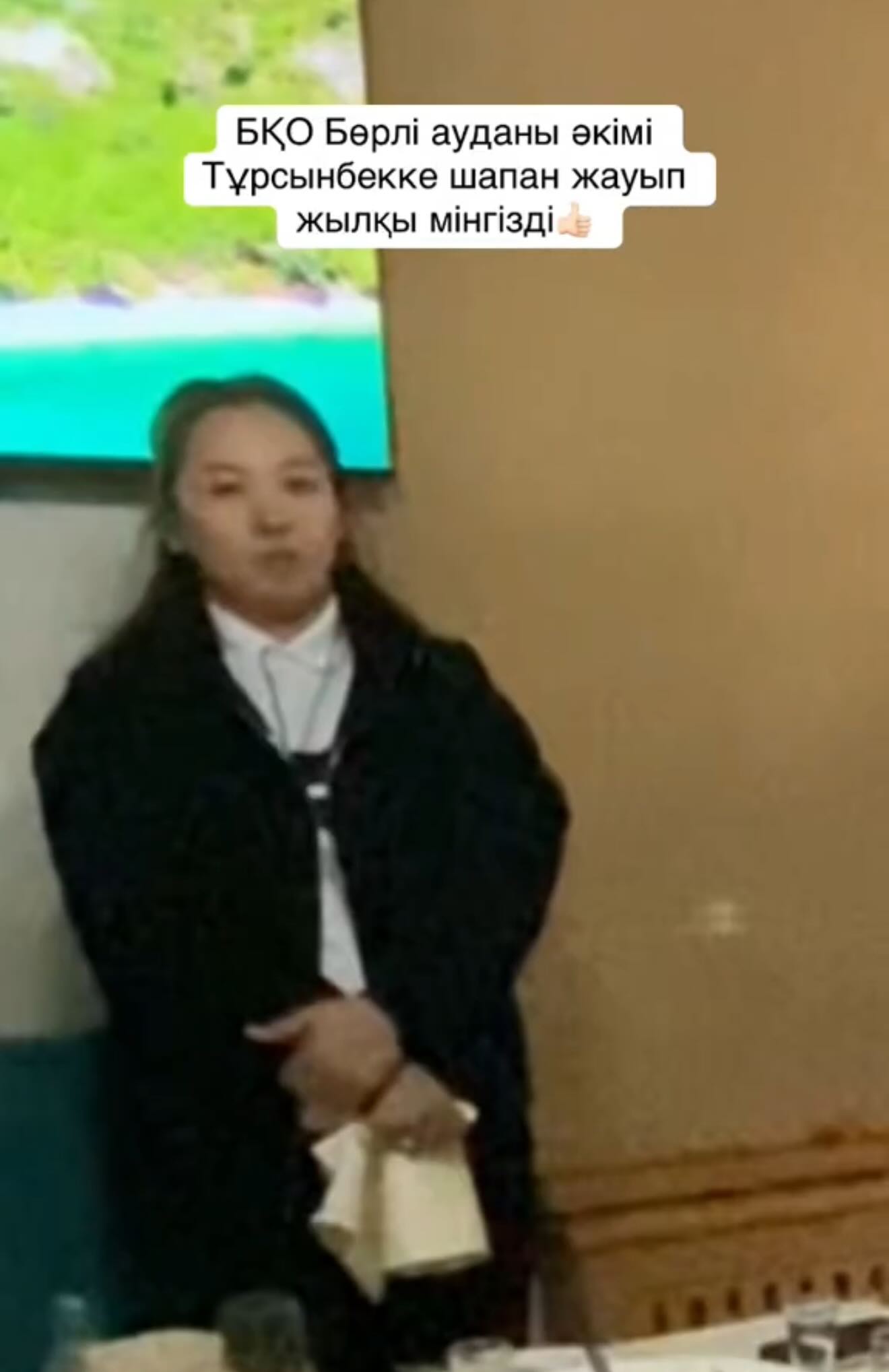 Желіде тараған бейнежазбадан шенеуніктің әзілкешке шапан жабумен қатар, қолына ат мінгізген есебінде конверт ұстатқанын көруге болады.
