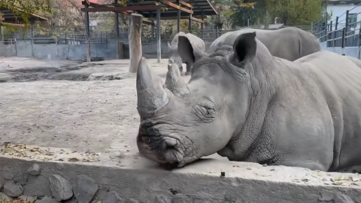 Алматы хайуанаттар бағында ер адам мүйізтұмсықт...
