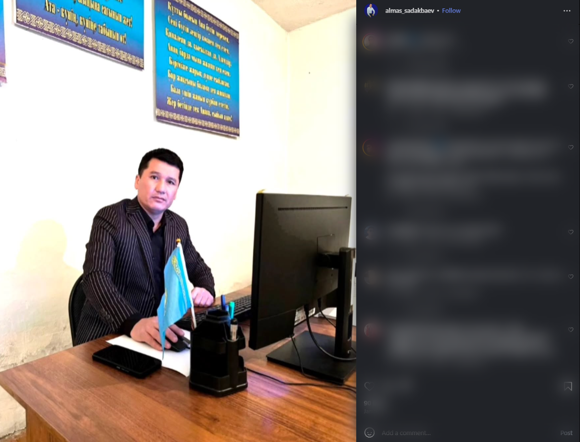 Желіде жарияланған ақпаратқа сәйкес, ер адам Шардара ауданы, Қоссейіт ауылының 41 жастағы тұрғыны. Жергілікті тұрғындар оны асаба ретінде таниды. Ол әлеуметтік желілерде де өзін осылай таныстырып, той-шаралардан және мешіттен түскен суреттерін жариялап отырған.