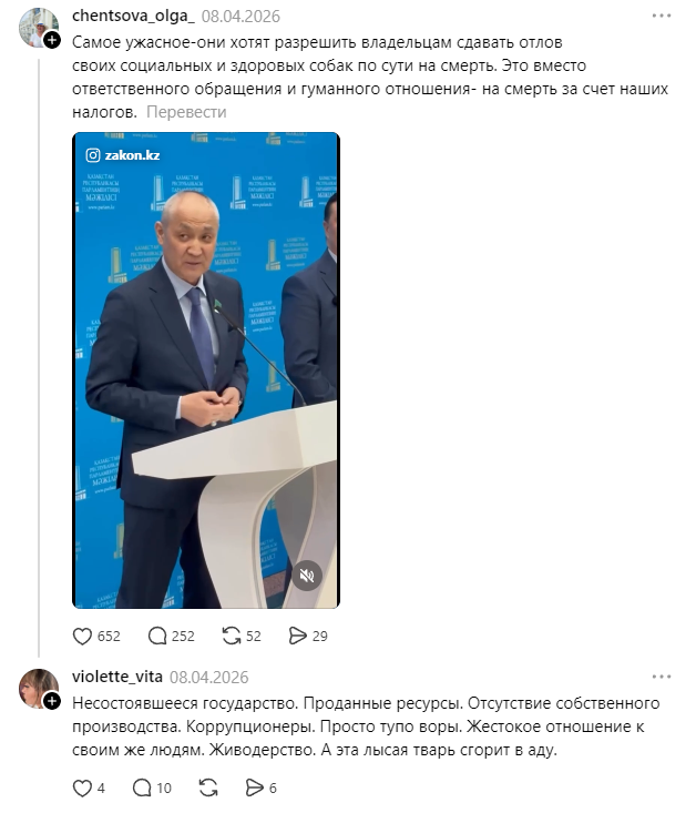 Қазнетте бұл жазбалар лезде тарап, жаппай наразылық толқынын тудырды. Желі қолданушылары әйелдің сөздеріне құқықтық баға беріп, оны ҚР Қылмыстық кодексінің 174-бабы («Ұлттық араздықты қоздыру») бойынша жауапқа тартуды сұрап, құқық қорғау органдарына үндеу тастауда.
