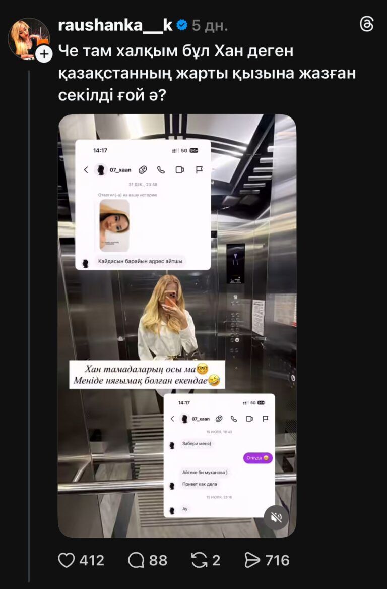 В соцсетях распространяются новые материалы и переписки, связанные с блогером «Хан тамада», на фоне ранее утекшего интимного видео, передает Politico.kz.